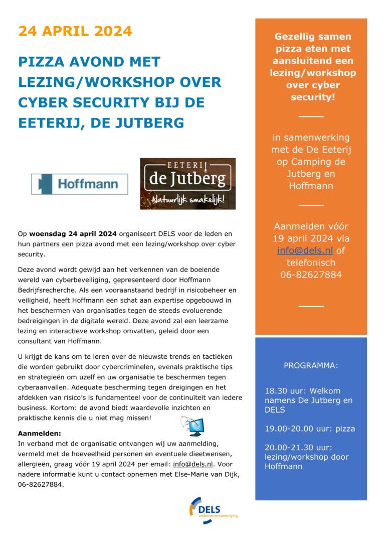 Noteert u alvast: DELS zomerborrel 2024 is op donderdag 13 juni 2024. De uitnodiging volgt binnenkort.